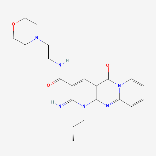 - Synonyms:1-Allyl-2-imino-N-(2-morpholinoethyl)-5-oxo-2,5-dihydro-1H-dipyrido[1,2-a:2',3'-d]pyrimidine-3-carboxamide;618383-59-8;STK815295;AKOS000528999;Z57785271;1-ALLYL-2-IMINO-N-[2-(4-MORPHOLINYL)ETHYL]-5-OXO-1,5-DIHYDRO-2H-DIPYRIDO[1,2-A:2',3'-D]PYRIMIDINE-3-CARBOXAMIDE;1-ALLYL-2-IMINO-N-[2-(4-MORPHOLINYL)ETHYL]-5-OXO-1,5-DIHYDRO-2H-DIPYRIDO[1,2-A:2,3-D]PYRIMIDINE-3-CARBOXAMIDE;2-imino-N-[2-(morpholin-4-yl)ethyl]-5-oxo-1-(prop-2-en-1-yl)-1,5-dihydro-2H-dipyrido[1,2-a:2',3'-d]pyrimidine-3-carboxamide