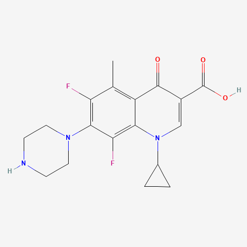- Synonyms:1-Cyclopropyl-6,8-difluoro-1,4-dihydro-5-methyl-4-oxo-7-(1-piperazinyl)-3-quinolinecarboxylic acid;CHEMBL16001;SCHEMBL8554756;ZTPAZQMBBUBRMX-UHFFFAOYSA-N;DTXSID101115017;119914-62-4;7-(1-piperazinyl)-1-cyclopropyl-6, 8-difluoro-5-methyl-1,4-dihydro-4-oxoquinoline-3-carboxylic acid;7-(1-piperazinyl)-1-cyclopropyl-6,8-difluoro-5-methyl-1, 4-dihydro-4-oxoquinoline-3carboxylic acid