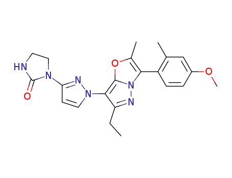 1-{1-[6-Ethyl-3-(4-methoxy-2-methyl-phenyl)-2-methyl-pyrazolo[5,1-b]oxazol-7-yl]-1H-pyrazol-3-yl}-imidazolidin-2-one(1207258-60-3)