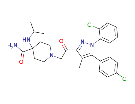 - Name: 1-{2-[1-(2-chlorophenyl)-5-(4-chlorophenyl)-4-methyl-1H-pyrazol-3-yl]-2-oxo-ethyl}-4-isopropylamino-piperidine-4-carboxylic acid amide