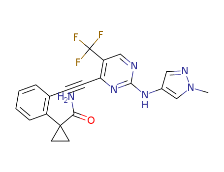 - Synonyms:1-(2-((2-((1-methyl-1H-pyrazol-4-yl)amino)-5-(trifluoromethyl)pyrimidin-4-yl)ethynyl)phenyl)cyclopropanecarboxamide