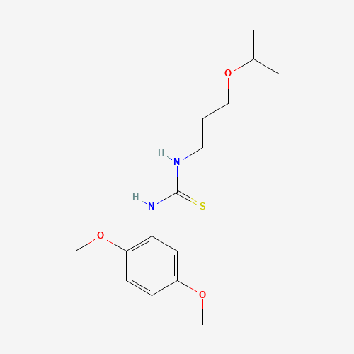 - Synonyms:443662-40-6;Thiourea, N-(2,5-dimethoxyphenyl)-N'-[3-(1-methylethoxy)propyl]-;DTXSID801181049;1-(2,5-dimethoxyphenyl)-3-[3-(propan-2-yloxy)propyl]thiourea;STK065764;AKOS002313473;N-(2,5-Dimethoxyphenyl)-N'-[3-(1-methylethoxy)propyl]thiourea