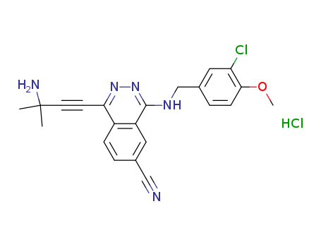 - Synonyms:1-(3-Amino-3-methyl-1-butynyl)-4-[(3-chloro-4-methoxybenzyl)amino]-6-phthalazinecarbonitrile Hydrochloride