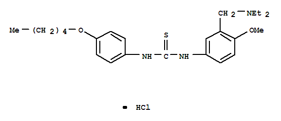 - Synonyms:Carbanilide,3-[(diethylamino)methyl]-4-methoxy-4'-(pentyloxy)thio-, monohydrochloride(8CI); Thiourea,N-[3-[(diethylamino)methyl]-4-methoxyphenyl]-N'-[4-(pentyloxy)phenyl]-,monohydrochloride (9CI)