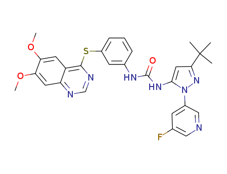 - Name: 1-(3-tert-butyl-1-(5-fluoropyridin-3-yl)-1H-pyrazol-5-yl)-3-(3-(6,7-dimethoxyquinazolin-4-ylthio)phenyl)urea