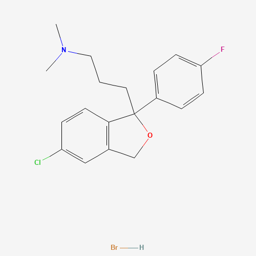 - Synonyms:1332724-08-9;5-Chlorodescyano Citalopram Hydrobromide;1-(4-Fluorophenyl)-1-(3-dimethylaminopropyl)-5-chlorophthalane hydrobromide;UNII-813308OAJ4;5-ChlorodescyanoCitalopramHydrobromide;813308OAJ4;1-(4'-Fluorophenyl)-1-(3-dimethylaminopropyl)-5-chlorophthalane hydrobromide;(+/-)-1-(4'-Fluorophenyl)-1-(3-dimethylaminopropyl)-5-chlorophthalane hydrobromide;3-[5-chloro-1-(4-fluorophenyl)-3H-2-benzofuran-1-yl]-N,N-dimethylpropan-1-amine;hydrobromide;1-Isobenzofuranpropanamine, 5-chloro-1-(4-fluorophenyl)-1,3-dihydro-N,N-dimethyl-, hydrobromide (1:1);XLWZQMAPPMWBPI-UHFFFAOYSA-N;Q27269195
