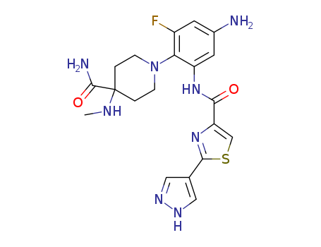 1-[4-amino-2-fluoro-6-[[[2-(1H-pyrazol-4-yl)-4-thiazolyl]carbonyl]amino]phenyl]-4-(methylamino)-4-piperidinecarboxamide(1374112-99-8)