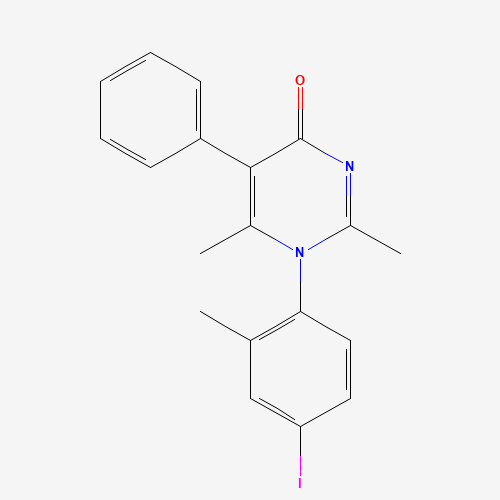 - Synonyms:DTXSID801165132;STK024913;AKOS005379887;1-(4-Iodo-2-methylphenyl)-2,6-dimethyl-5-phenyl-4(1H)-pyrimidinone;1-(4-iodo-2-methylphenyl)-2,6-dimethyl-5-phenylpyrimidin-4(1H)-one;732249-80-8