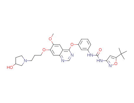 1-(5-tert-butyl-isoxazol-3-yl)-3-(3-{7-[3-(3-hydroxy-pyrrolidin-1-yl)-propoxy]-6-methoxy-quinazolin-4-yloxy}-phenyl)-urea(1188907-10-9)