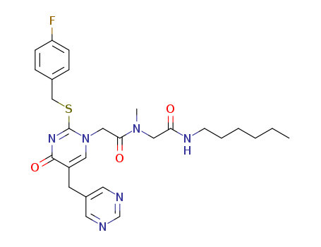 - Name: 1-(N-(N'-Hex-1-ylaminocarbonylmethyl)-N-methylaminocarbonyl-methyl)-2-(4-fluorobenzyl)thio-5-(pyrimid-5-ylmethyl)pyrimidin-4-one