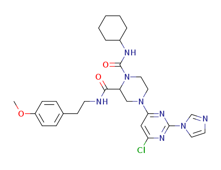 - Name: 1-(cyclohexyl)aminocarbonyl-4-[6-chloro-2-(1H-imidazol-1-yl)pyrimidin-4-yl]-N-[2-(4-methoxyphenyl)ethyl]piperazine-2-carboxamide