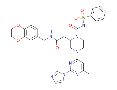 - Name: 1-(phenylsulfonyl)aminocarbonyl-4-[6-methyl-2-(1H-imidazol-1-yl)pyrimidin-4-yl]-N-[(1,4-benzodioxan-6-yl)methyl]piperazine-2-acetamide