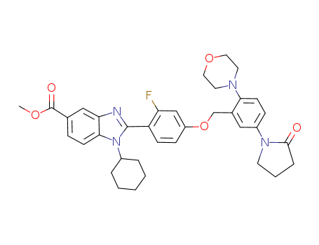 - Synonyms:1-cyclohexyl-2-{2-fluoro-4-[morpholin-4-yl-5-(2-oxopyrrolidin-1-yl)benzyloxy]phenyl}-1H-benzimidazole-5-carboxylic acid methyl ester
