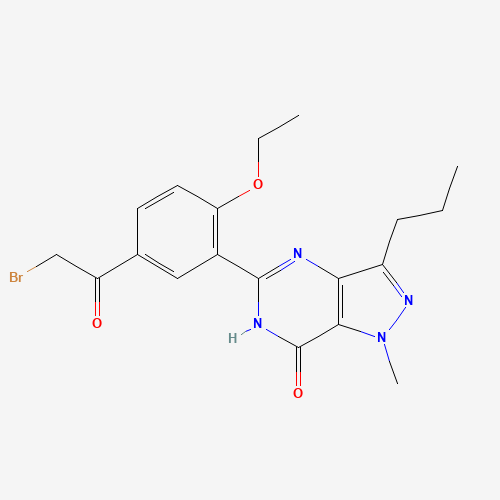 - Synonyms:147676-94-6;1,4-Dihydro-5-[5-bromoacetyl)-2-ethoxyphenyl]-1-methyl-3-propyl-7H-pyrazolo[4,3-d]pyrimidin-7-one;5-[5-(2-bromoacetyl)-2-ethoxyphenyl]-1-methyl-3-propyl-4H-pyrazolo[4,3-d]pyrimidin-7-one;PIASSJCOLPSEOA-UHFFFAOYSA-N;SCHEMBL7961638;1,4-Dihydro-5-[5-(2-bromoacetyl)-2-ethoxyphenyl]-1-methyl-3-propyl-7H-pyrazolo[4,3-d]pyrimidin-7-one (may contain 5-(2-chloroacetyl));5-[5-(2-bromoacetyl)-2-ethoxyphenyl]-1-methyl-3-propyl-6H-pyrazolo[4,3-d]pyrimidin-7-one;5-(5-bromoacetyl-2-ethoxyphenyl)-1-methyl-3-n-propyl-1,6-dihydro-7H-pyrazolo [4,3-d]pyrimidin-7-one;5-(5-bromoacetyl-2-ethoxyphenyl)-1-methyl-3-n-propyl-1,6-dihydro-7h-pyrazolo[4,3-d]-pyrimidin-7-one;5-(5-bromoacetyl-2-ethoxyphenyl)-1-methyl-3-n-propyl-1,6-dihydro-7H-pyrazolo[4,3-d]pyrimidin-7-one