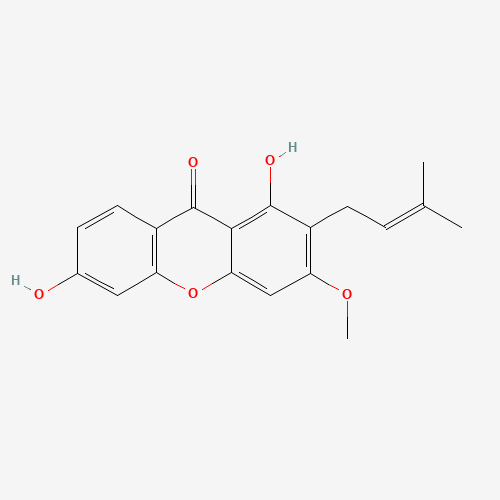 - Synonyms:1,6-Dihydroxy-3-methoxy-2-prenylxanthone;SCHEMBL3416379;CHEBI:175159;DTXSID101166296;119227-98-4;1,6-dihydroxy-3-methoxy-2-(3-methylbut-2-enyl)xanthen-9-one;1,6-Dihydroxy-3-methoxy-2-(3-methyl-2-buten-1-yl)-9H-xanthen-9-one