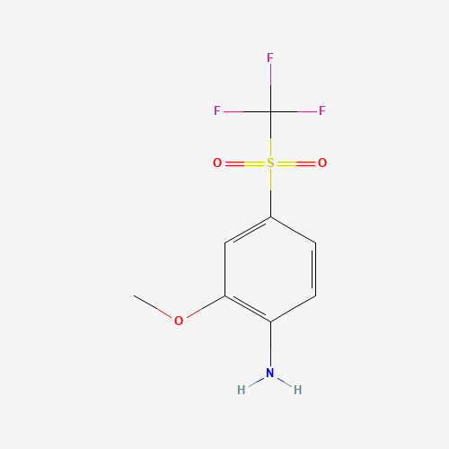 - Synonyms:914776-02-6;2-methoxy-4-(trifluoromethylsulfonyl)benzenamine;DTXSID90698612;2-methoxy-4-trifluoromethanesulfonyl aniline;2-Methoxy-4-(trifluoromethanesulfonyl)aniline