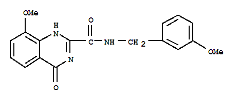- Synonyms:2-Quinazolinecarboxamide,1,4-dihydro-8-methoxy-N-[(3-methoxyphenyl)methyl]-4-oxo- (9CI);8-(Methyloxy)-N-[[3-(methyloxy)phenyl]methyl]-4-oxo-3,4-dihydroquinazoline-2-carboxamide