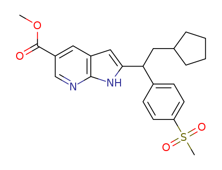 - Synonyms:2-[2-cyclopentyl-1-(4-methanesulfonyl-phenyl)-ethyl]-1H-pyrrolo[2,3-b]pyridin-5-carboxylic acid methyl ester