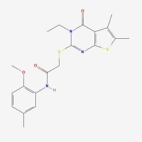 - 618427-55-7/2-((3-Ethyl-5,6-dimethyl-4-oxo-3,4-dihydrothieno[2,3-d]pyrimidin-2-yl)thio)-N-(2-methoxy-5-methylphenyl)acetamide