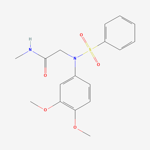 - Synonyms:2-[3,4-dimethoxy(phenylsulfonyl)anilino]-N-methylacetamide;Oprea1_073925;SEADUZMSAWKDEH-UHFFFAOYSA-N;DTXSID301171300;2-[N-(benzenesulfonyl)-3,4-dimethoxyanilino]-N-methylacetamide;STK916960;AKOS003205127;AG-690/15440045;2-[(3,4-Dimethoxyphenyl)(phenylsulfonyl)amino]-N-methylacetamide;N~2~-(3,4-dimethoxyphenyl)-N-methyl-N~2~-(phenylsulfonyl)glycinamide;333452-79-2