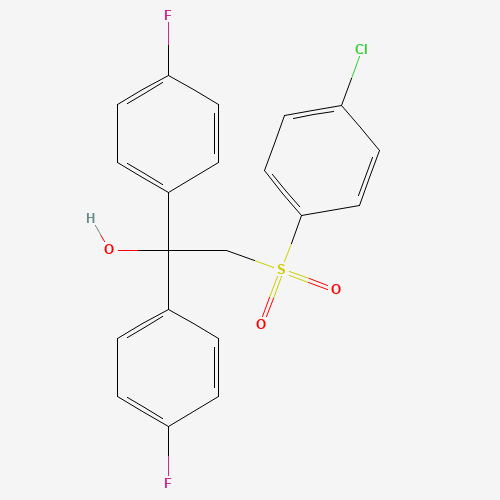 - Synonyms:303152-05-8;2-(4-chlorobenzenesulfonyl)-1,1-bis(4-fluorophenyl)ethan-1-ol;2-[(4-chlorophenyl)sulfonyl]-1,1-bis(4-fluorophenyl)-1-ethanol;2-(4-chlorophenyl)sulfonyl-1,1-bis(4-fluorophenyl)ethanol;Benzenemethanol, alpha-[[(4-chlorophenyl)sulfonyl]methyl]-4-fluoro-alpha-(4-fluorophenyl)-;Oprea1_262815;DTXSID201135486;AKOS005077575;11H-306S;CS-0379282;2-((4-Chlorophenyl)sulfonyl)-1,1-bis(4-fluorophenyl)ethanol;alpha-[[(4-Chlorophenyl)sulfonyl]methyl]-4-fluoro-alpha-(4-fluorophenyl)benzenemethanol