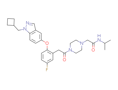 - Synonyms:2-(4-{2-[2-(1-cyclobutylmethyl-1H-indazol-5-yloxy)-5-fluorophenyl]-acetyl}-piperazin-1-yl)-N-isopropylacetamide