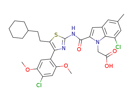 - Name: 2-(4-(4-chloro-2,5-dimethoxyphenyl)-5-(2-cyclohexylethyl)thiazol-2-ylcarbamoyl)-5-methyl-7-chloroindole-1-acetic acid