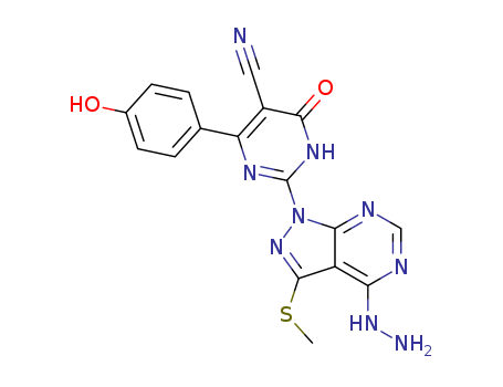 - Synonyms:2-[4-hydrazinyl-3-(methylsulfanyl)-1H-pyrazolo[3,4-d]pyrimidin-1-yl]-4-(4-hydroxyphenyl)-6-oxo-1,6-dihydropyrimidine-5-carbonitrile