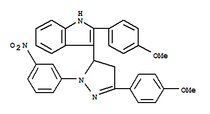 - Synonyms:2-(4-methoxyphenyl)-3-[5-(4-methoxyphenyl)-2-(3-nitrophenyl)-3,4-dihyd ropyrazol-3-yl]-1H-indole