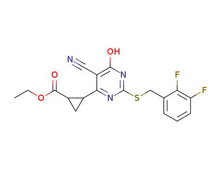 2-[5-cyano-2-(2,3-difluorobenzylsulfanyl)-6-hydroxy-pyrimidin-4-yl]-cyclopropanecarboxylic acid ethyl ester(1029521-35-4)
