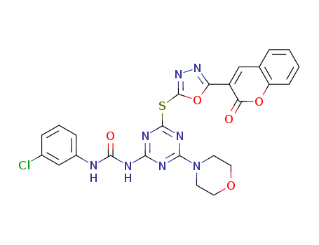 - Name: 2-{(coumarin-3-yl-1,3,4-oxadiazolyl)-5-thio}-4-(morpholino)-6-(3-chlorophenylureido)-s-triazine