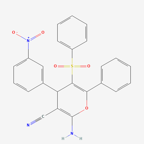 - Synonyms:AKOS024362258;2-amino-4-(3-nitrophenyl)-6-phenyl-5-(phenylsulfonyl)-4H-pyran-3-carbonitrile