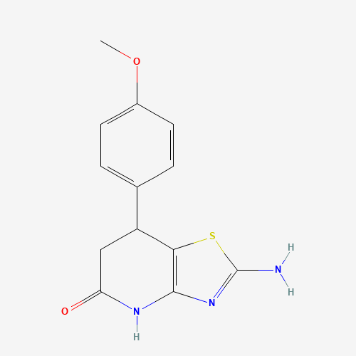 - Synonyms:2-amino-7-(4-methoxyphenyl)-6,7-dihydro[1,3]thiazolo[4,5-b]pyridin-5(4H)-one;936074-37-2;DTXSID701150807;NSC771799;STK693441;AKOS005604992;MCULE-8361995490;NSC-771799;2-Amino-6,7-dihydro-7-(4-methoxyphenyl)thiazolo[4,5-b]pyridin-5(4H)-one;2-amino-7-(4-methoxyphenyl)-6,7-dihydro-4H-[1,3]thiazolo[4,5-b]pyridin-5-one
