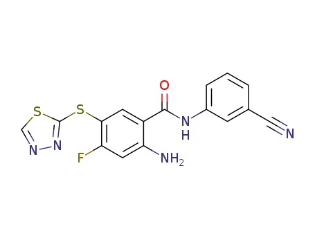 - Name: 2-amino-N-(3-cyano-phenyl)-4-fluoro-5-(1,3,4-thiadiazol-2-ylsulfanyl)-benzamide