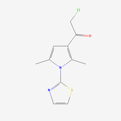 - Synonyms:747411-02-5;2-chloro-1-[2,5-dimethyl-1-(1,3-thiazol-2-yl)-1H-pyrrol-3-yl]ethanone;2-chloro-1-[2,5-dimethyl-1-(1,3-thiazol-2-yl)-1H-pyrrol-3-yl]ethan-1-one;2-Chloro-1-(2,5-dimethyl-1-(thiazol-2-yl)-1H-pyrrol-3-yl)ethanone;2-chloro-1-[2,5-dimethyl-1-(1,3-thiazol-2-yl)pyrrol-3-yl]ethanone;AKOS008966981;SB63007;CS-0221524;EN300-09375;Z56979277