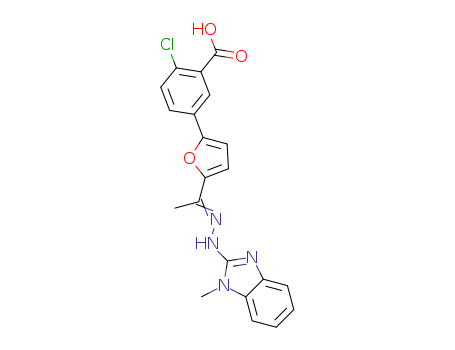 - Name: 2-chloro-5-(5-(1-(2-(1-methyl-1H-benzimidazol-2-yl)hydrazono)ethyl)furan-2-yl)benzoic acid