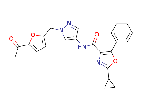 - Name: 2-cyclopropyl-5-phenyl-oxazole-4-carboxylic acid [1-(5-acetyl-furan-2-ylmethyl)-1H-pyrazol-4-yl]-amide