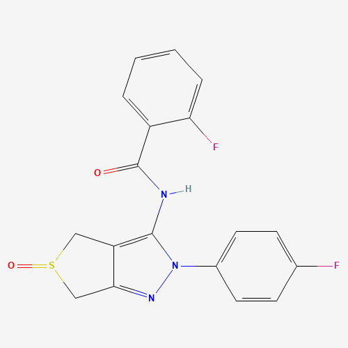 - Name: 2-fluoro-N-(2-(4-fluorophenyl)-5-oxido-4,6-dihydro-2H-thieno[3,4-c]pyrazol-3-yl)benzamide