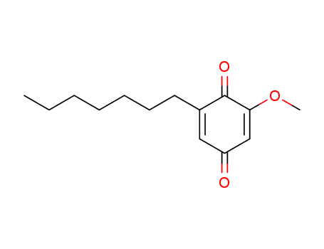 - Synonyms:Quinone,2-heptyl-6-methoxy- (3CI); 2-Heptyl-6-methoxy-1,4-benzoquinone;2-Methoxy-6-heptyl-1,4-benzoquinone