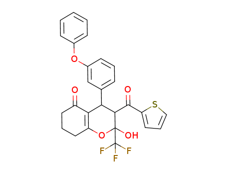 2-hydroxy-4-(3-phenoxyphenyl)-3-(thiophene-2-carbonyl)-2-(trifluoromethyl)-3,4,7,8-tetrahydro-2H-chromen-5(6H)-one(1038557-53-7)