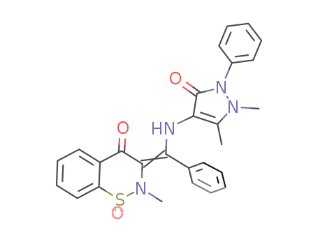 - Name: 2-methyl-3-[(2,3-dimethyl-1-phenyl-2,5-dihydro-5-oxo-1H-pyrazol-4-ylamino)(phenyl)methylene]-4-oxo-1,2,3,4-tetrahydro-1-6,2-benzothiazine 1,1-dioxide