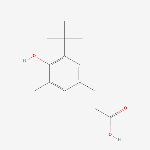 - Synonyms:2-tert-Butyl-4-(2-carboxyethyl)-6-methylphenol;86FJU8655U;UNII-86FJU8655U;24794-55-6;Hydrocinnamic acid, 3-tert-butyl-4-hydroxy-5-methyl-;3-(1,1-Dimethylethyl)-4-hydroxy-5-methylbenzenepropanoic acid;Benzenepropanoic acid, 3-(1,1-dimethylethyl)-4-hydroxy-5-methyl-;beta-(3-tert-Butyl-4-hydroxy-5-methylphenyl)propionic acid;SCHEMBL39866;AKOS038555734;3-(5-t-butyl-4-hydroxy-3-methylphenyl)propanoic acid;3-(3-tert-butyl-4-hydroxy-5-methylphenyl)propanoic acid;.BETA.-(3-TERT-BUTYL-4-HYDROXY-5-METHYLPHENYL)PROPIONIC ACID