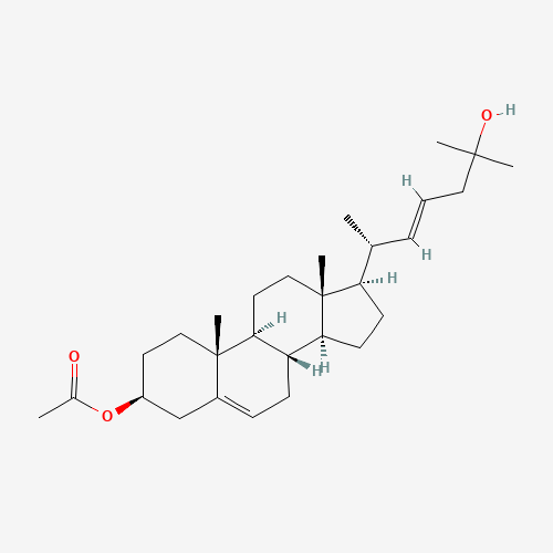 - Synonyms:22-Dehydro 25-Hydroxy Cholesterol 3-Acetate;157171-88-5;[(3S,8S,9S,10R,13R,14S,17R)-17-[(E,2R)-6-Hydroxy-6-methylhept-3-en-2-yl]-10,13-dimethyl-2,3,4,7,8,9,11,12,14,15,16,17-dodecahydro-1H-cyclopenta[a]phenanthren-3-yl] acetate