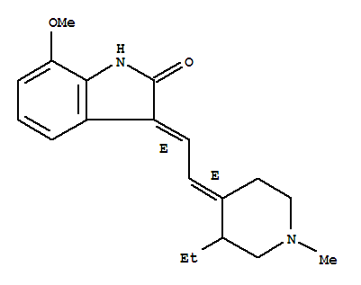 - Name: 2H-Indol-2-one,3-[(2E)-(3-ethyl-1-methyl-4-piperidinylidene)ethylidene]-1,3-dihydro-7-methoxy-,(3E)-(+)- (9CI)