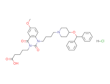 - Synonyms:2,4-Dioxo-1-[4-(4-diphenylmethoxypiperidino)butyl]-6-methoxy-1,2,3,4-tetrahydroquinazoline-3-valeric acid hydrochloride