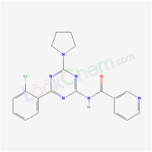 - Synonyms:N-(4-(2-Chlorophenyl)-6-(1-pyrrolidinyl)-1,3,5-triazin-2-yl)-3-pyridinecarboxamide;3-Pyridinecarboxamide,N-(4-(2-chlorophenyl)-6-(1-pyrrolidinyl)-1,3,5-triazin-2-yl);