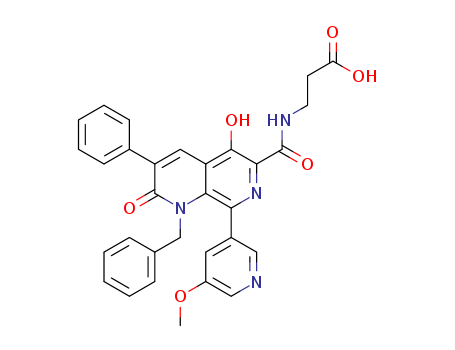 - Synonyms:3-{[1-benzyl-5-hydroxy-8-(5-methoxy-pyridin-3-yl)-2-oxo-3-phenyl-1,2-dihydro-[1,7]naphthyridine-6-carbonyl]-amino}-propionic acid