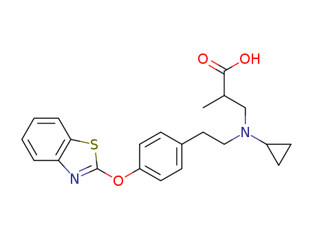 - Synonyms:3-((2-[4-(benzothiazol-2-yloxy)-phenyl]-ethyl)-cyclopropyl-amino)-2-methyl-propionic acid