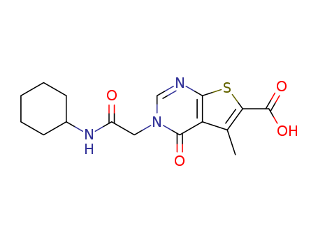 - Synonyms:3-(2-(cyclohexylamino)-2-oxoethyl)-5-methyl-4-oxo-3,4-dihydrothieno[2,3-d]pyrimidine-6-carboxylic acid