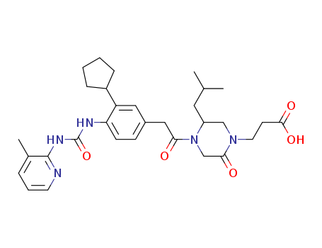 - Name: 3-(3-iso-butyl-6-oxo-4-{[3-cyclopentyl-4-(3-{3-methylpyrid-2-yl}-ureido)-phenyl]-acetyl}-piperazin-1-yl)-propionic acid